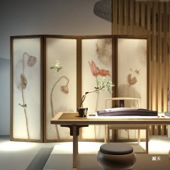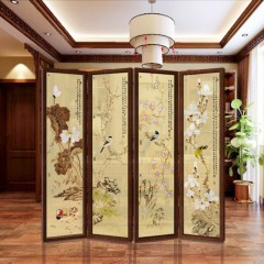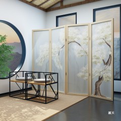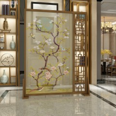 简约现代实木透明折叠座屏玄关客厅书房卧室隔断工笔花鸟屏风1