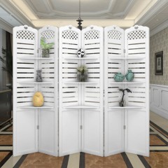 九信 屏风隔断移动田园办公室餐厅客厅折屏双隔板置物架 灰色单