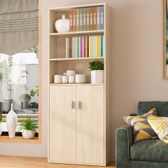 雅美乐五层1.8米板式书柜简易书架层架 木质对开门储物收纳柜子