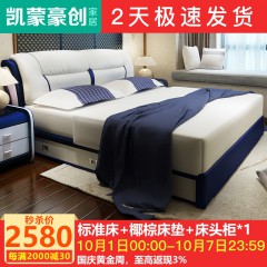 凯蒙豪创 床 真皮床 软床 皮床 双人床1.8*2.0米-标准床+椰棕床