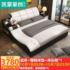 凯蒙豪创 真皮 双人床 主卧 皮床 668 1.8*2.0米床+椰棕床垫+1柜