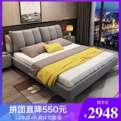 中派 床卧室双人真皮床 1.8*2.0标准床+床垫+床头柜1个
