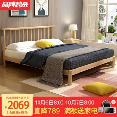 悠质家 床 实木床1.8米单人双人床1.5米北欧橡木卧室家具 A1703