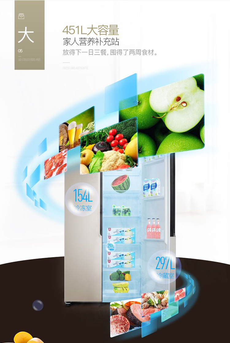 商品名称:创维(Skyworth)451升对开门冰箱 风冷无霜 电脑控温 时尚纤薄设计