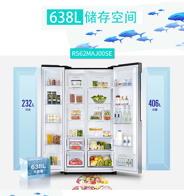 商品名称:三星(SAMSUNG) RS62K6130S8/SC 638升变频风冷无霜节能对开门冰箱