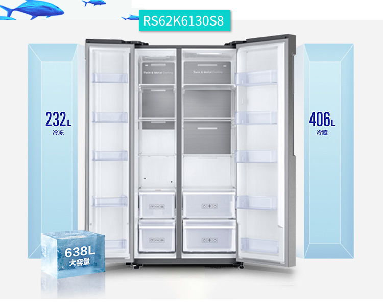 三星(SAMSUNG) RS62K6130S8/SC 638升变频风冷无霜节能对开门冰箱