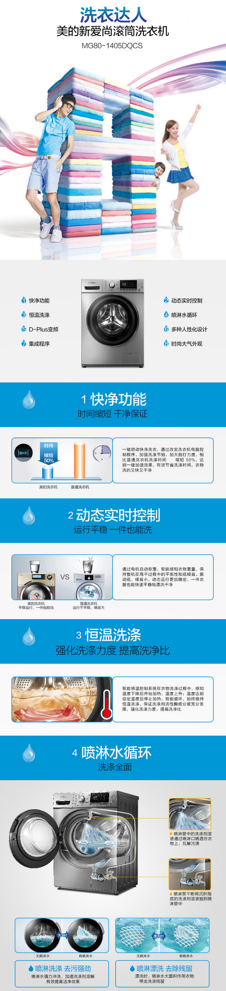 商品名称:美的洗衣机MG80-1405DQCS 8公斤