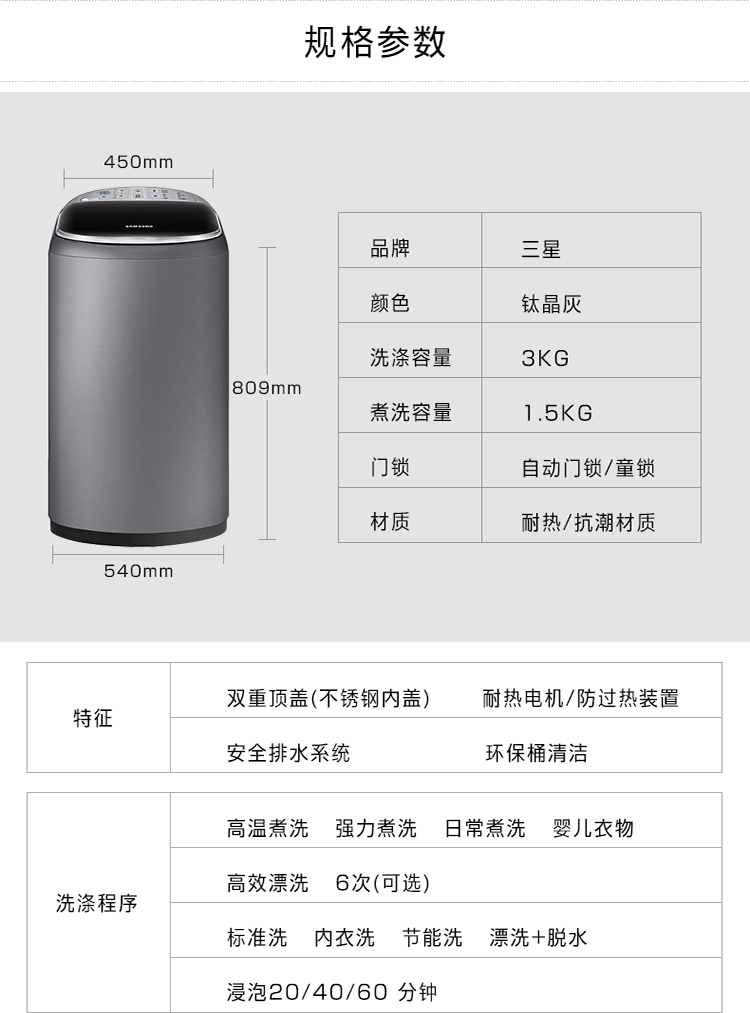 商品名称:三星(SAMSUNG) 3公斤进口爱婴高温煮洗全自动波轮洗衣机