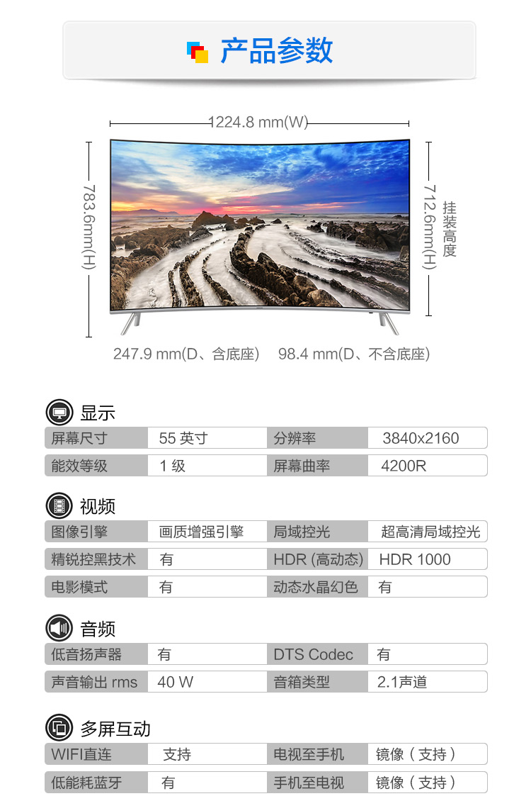 商品名称:三星(SAMSUNG) UA55MU8900JXXZ 55英寸4K超高清曲面智能网络电视