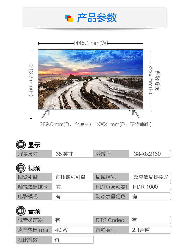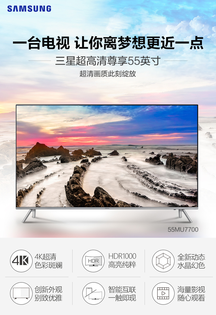 商品名称:三星(SAMSUNG)UA65MU7700JXXZ 65英寸 4K超高清 HDR 智能电视