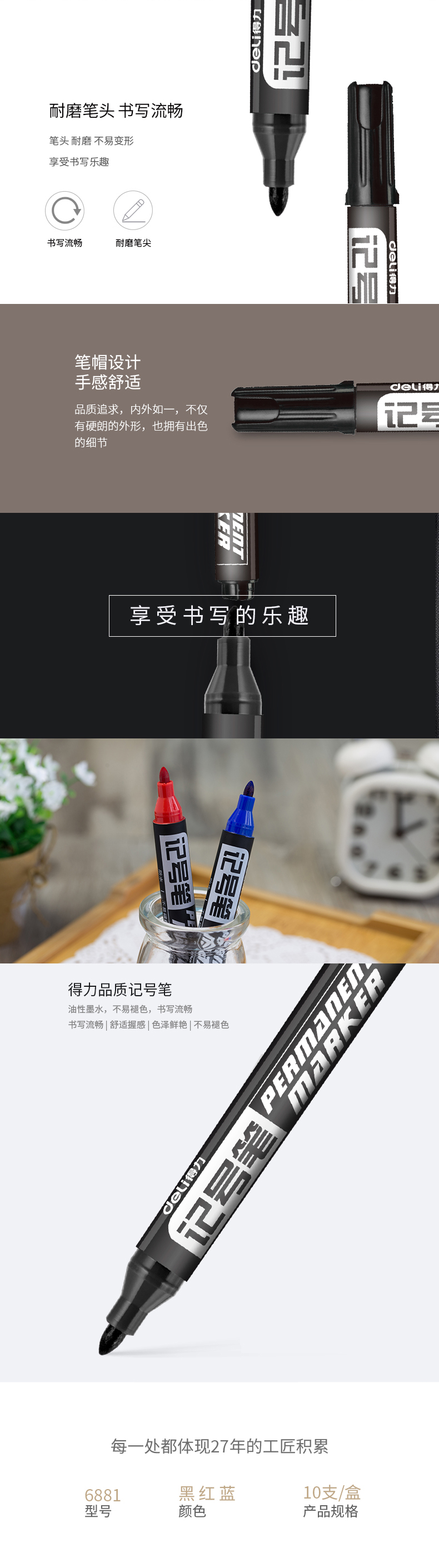 商品名称:得力思达6881记号笔(红) 10支装
