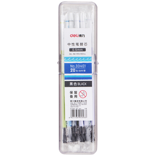 得力(deli)0.5mm学生全针管黑色中性笔芯 20支/桶33401