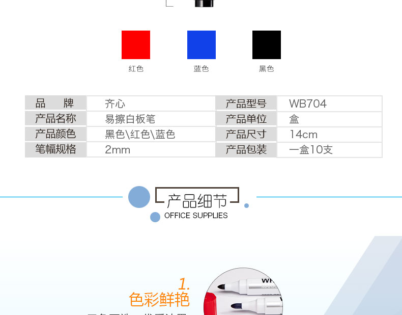 商品名称:齐心(COMIX)WB704 易擦白板笔 蓝色(120支/箱)