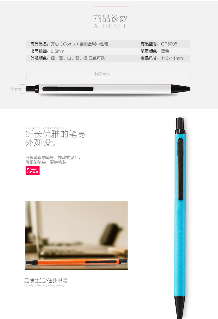 商品名称:齐心(COMIX)GP5005 雅丽金属中性笔 0.5mm紫(24卡/箱)