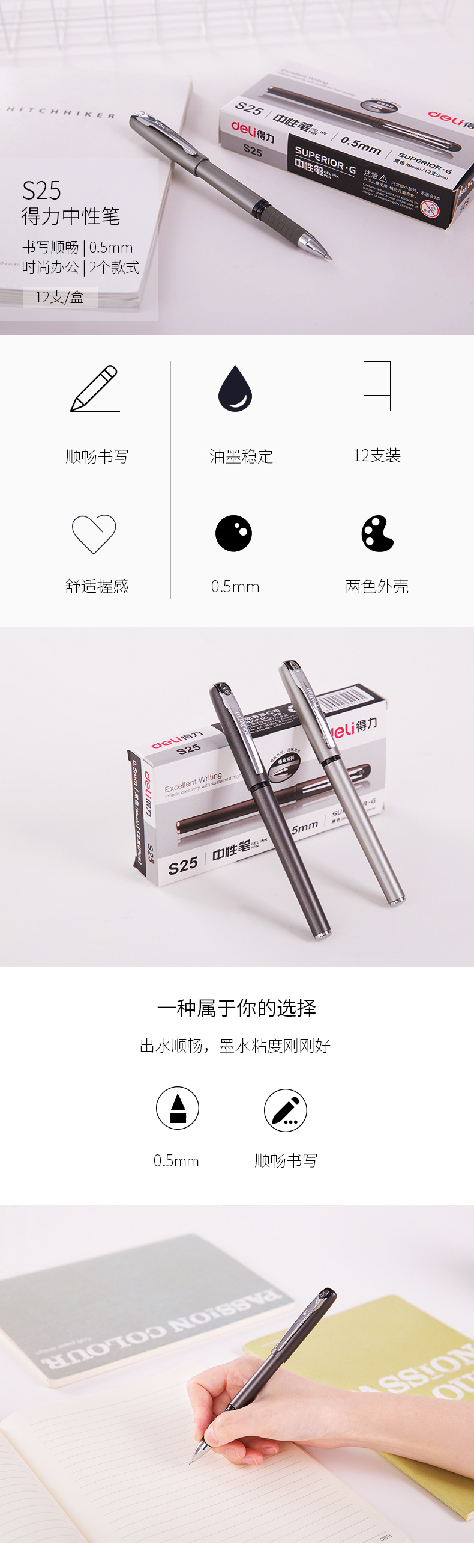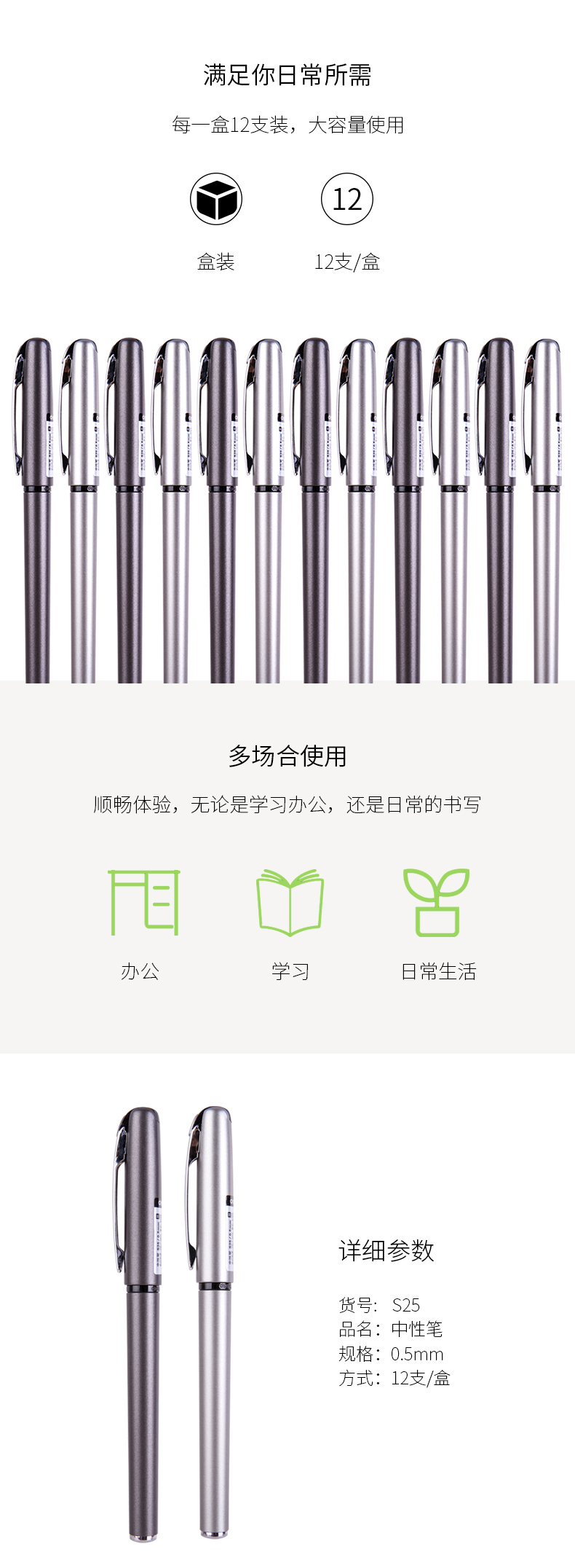 商品名称:得力思达S25中性笔(黑) 12支装