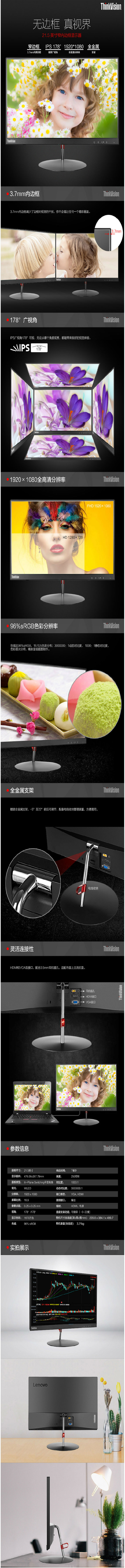 商品名称:联想 X22 电脑显示器 21.5英寸纤薄窄边框 高清分辨率全金属支架(不包邮)