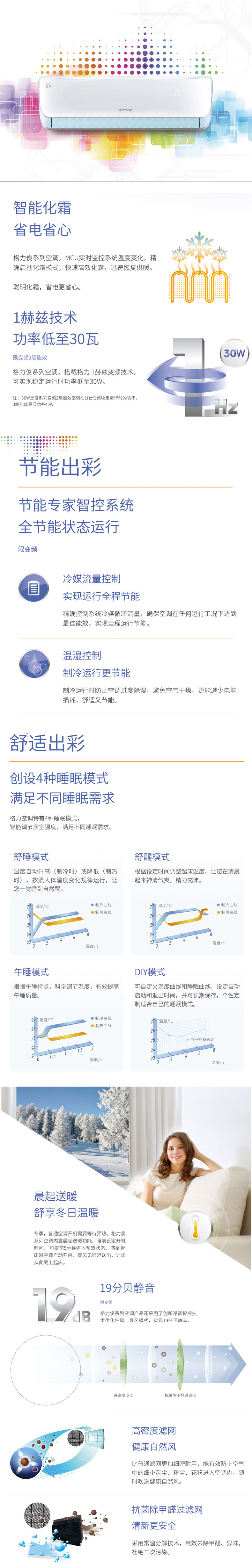 格力 KFR-32GW/(32559)FNAa-A3(淡蓝) 俊越变频3 空调