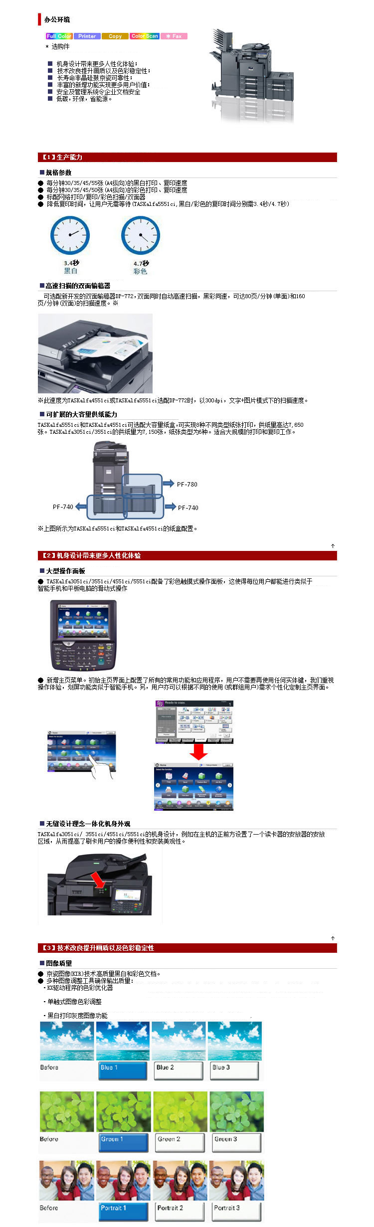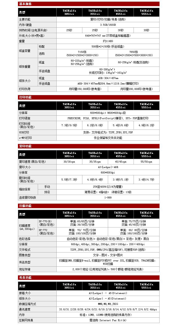 商品名称:京瓷(KYOCERA)TASKalfa 4551ci 彩色复印机 主机