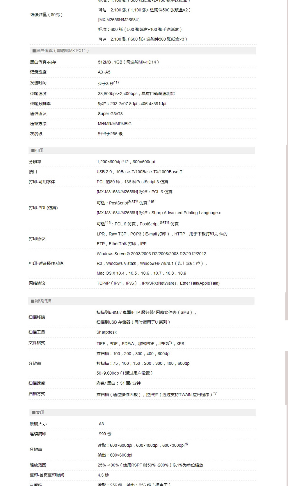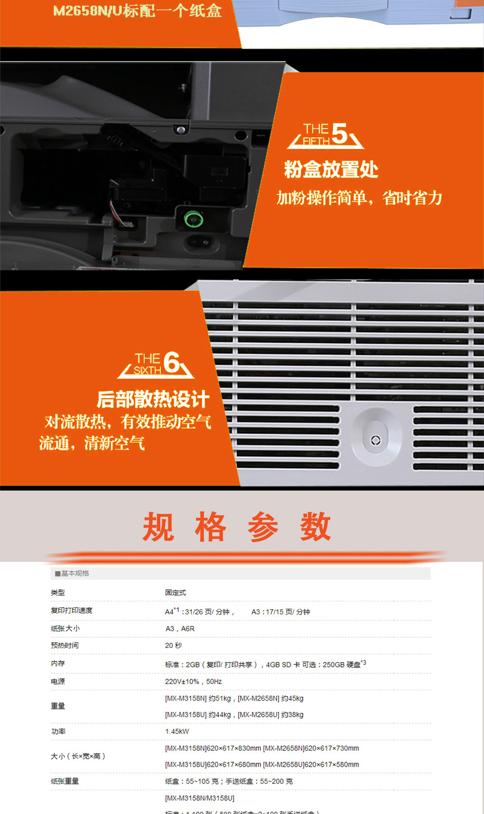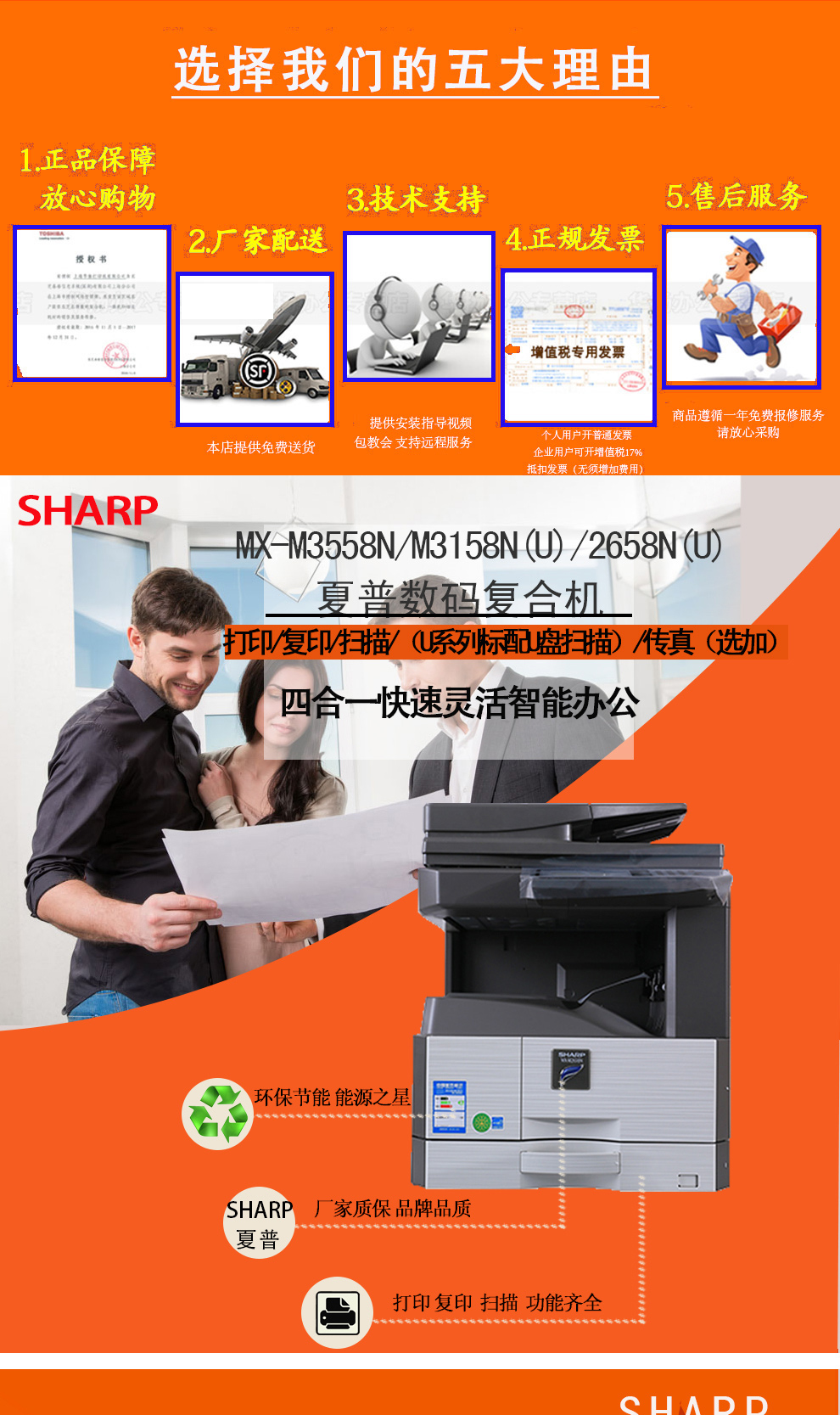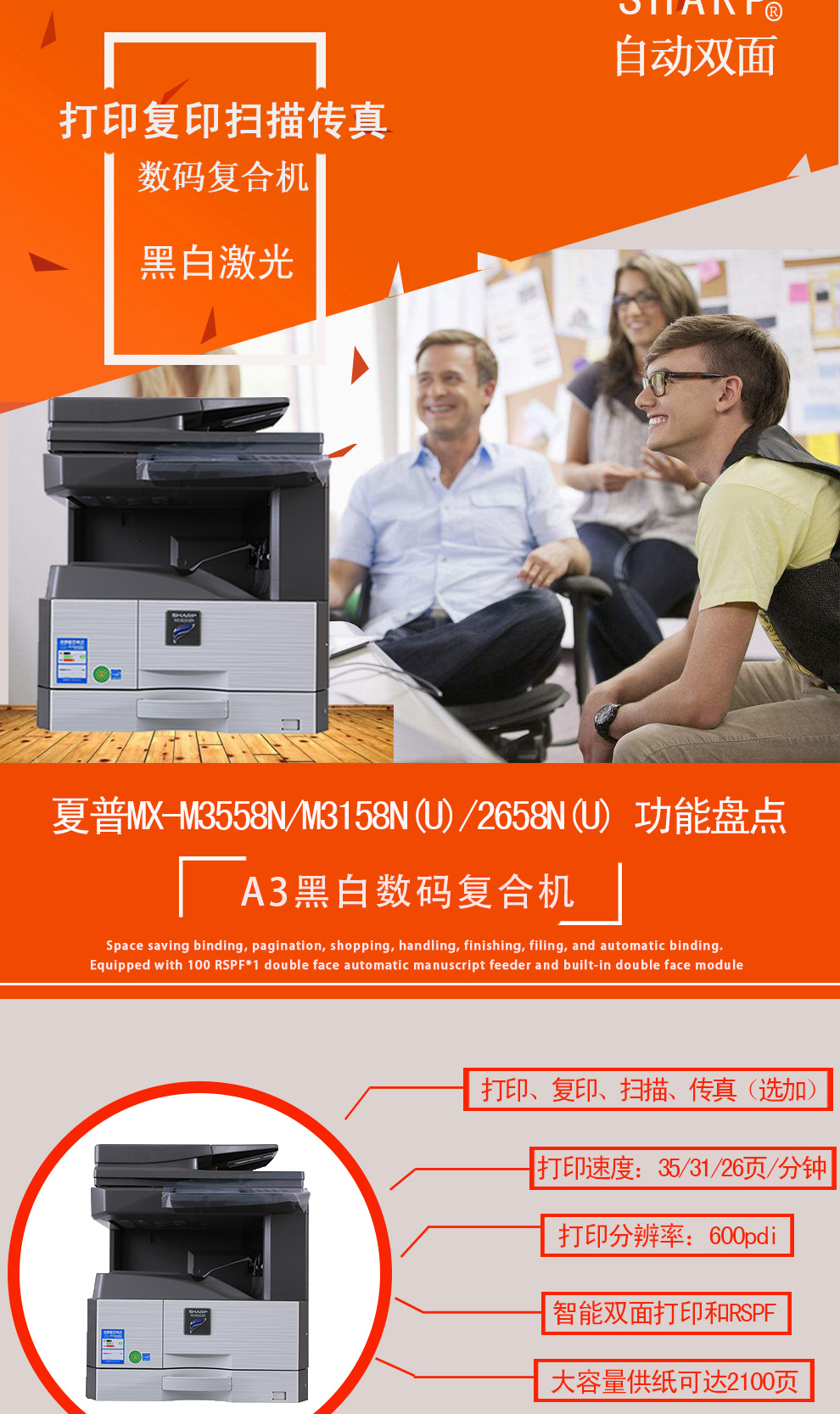 商品名称:夏普(SHARP)MX-M2658U复印机 A3激光2658复合机(网络打印 双面复印扫描)