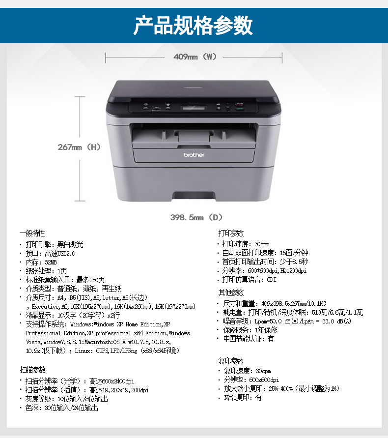 商品名称:兄弟DCP-7080D激光打印机复印机扫描一体机自动双面 高速办公家用