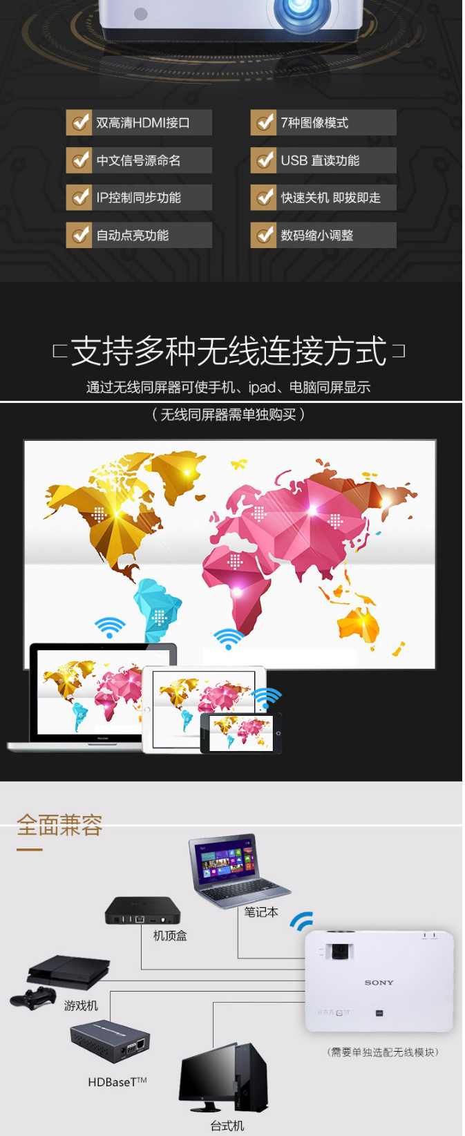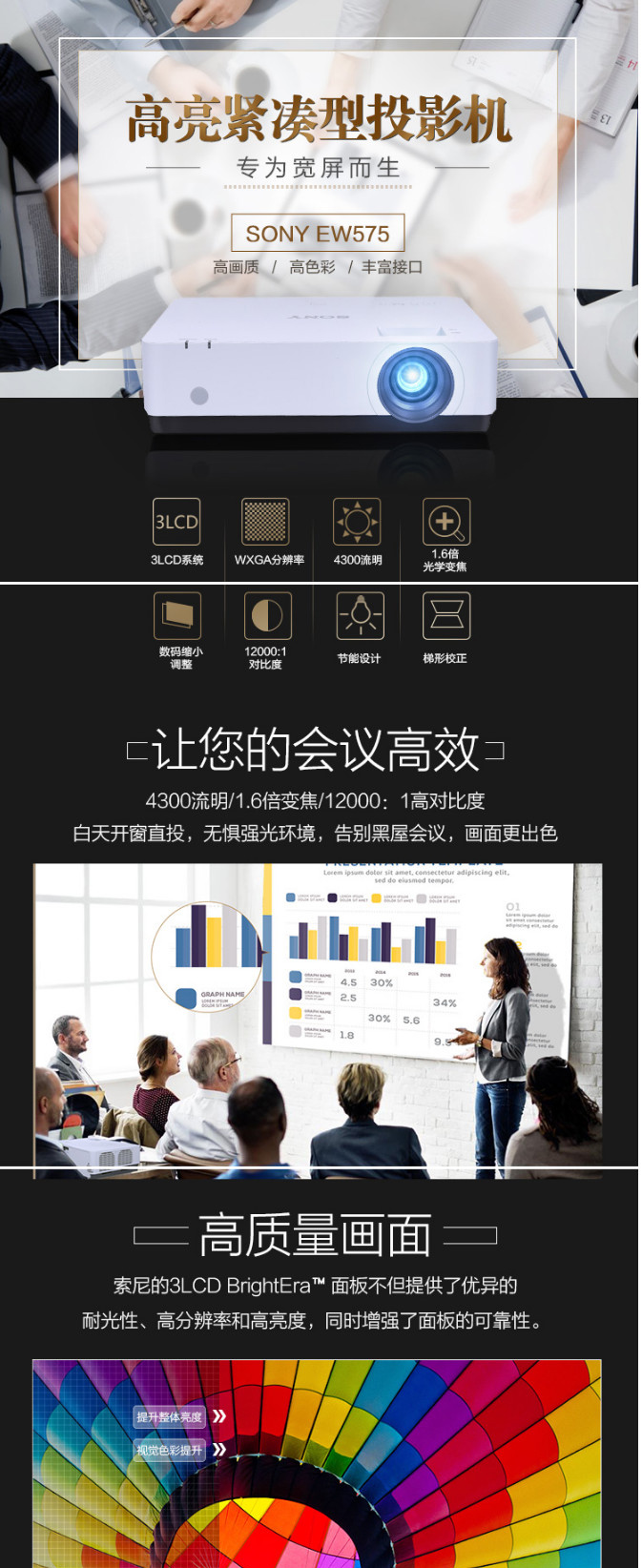 商品名称:索尼 VPL-EW575 投影仪 商务宽屏 (不包邮)