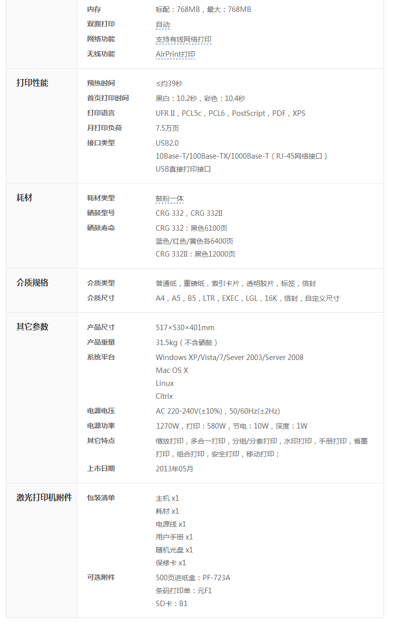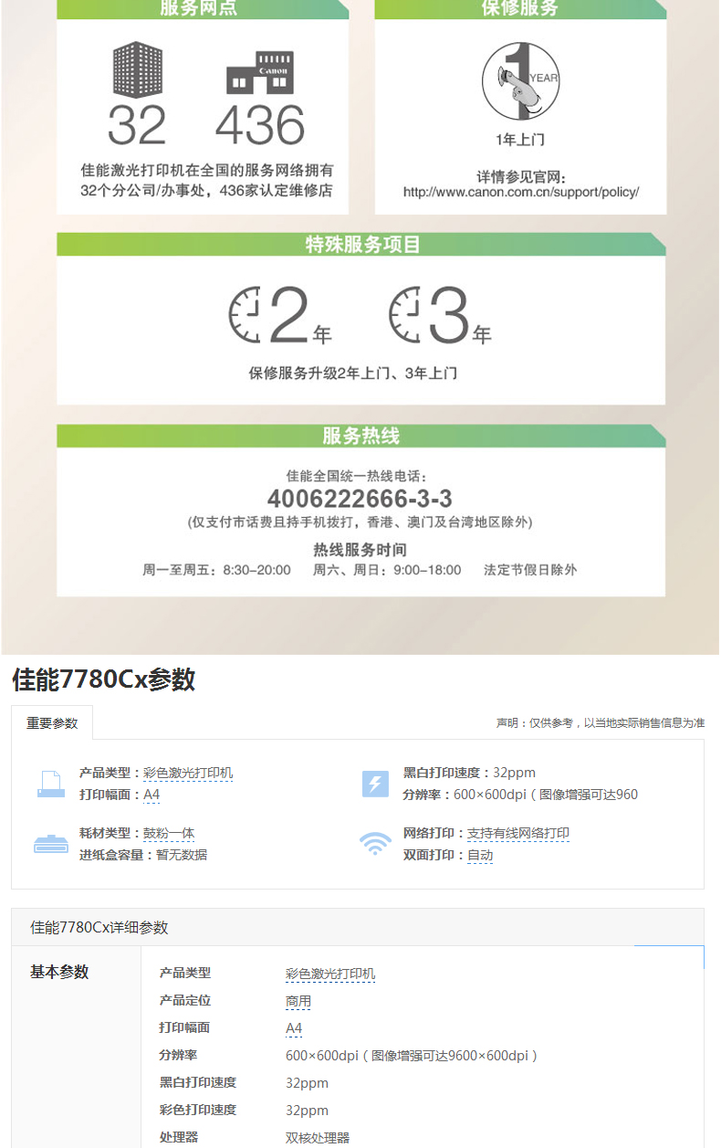 商品名称:佳能(Canon) LBP7780CX 彩色激光网络打印机(自动双面)
