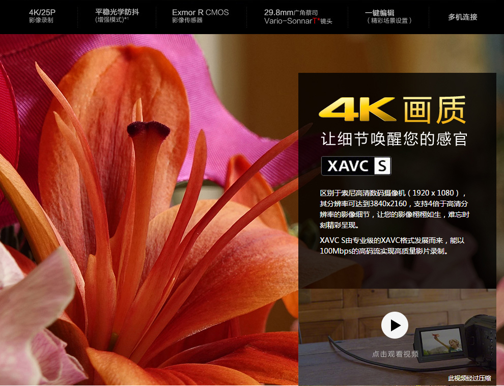 商品名称:索尼(SONY) FDR-AX30 4K 高清摄像机 4K高清/红外灯夜视 AX30
