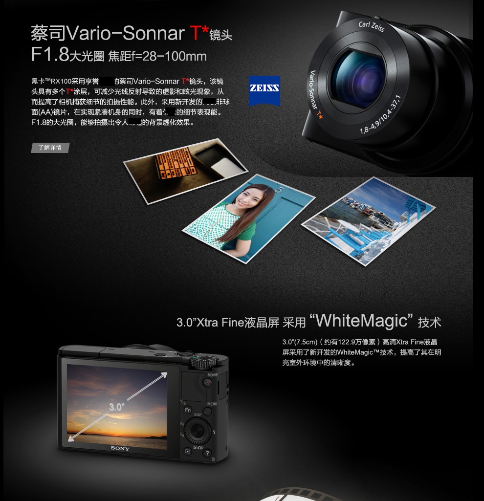 索尼(SONY) 专业数码相机 黑卡相机 DSC-RX100 II (RX100M2)