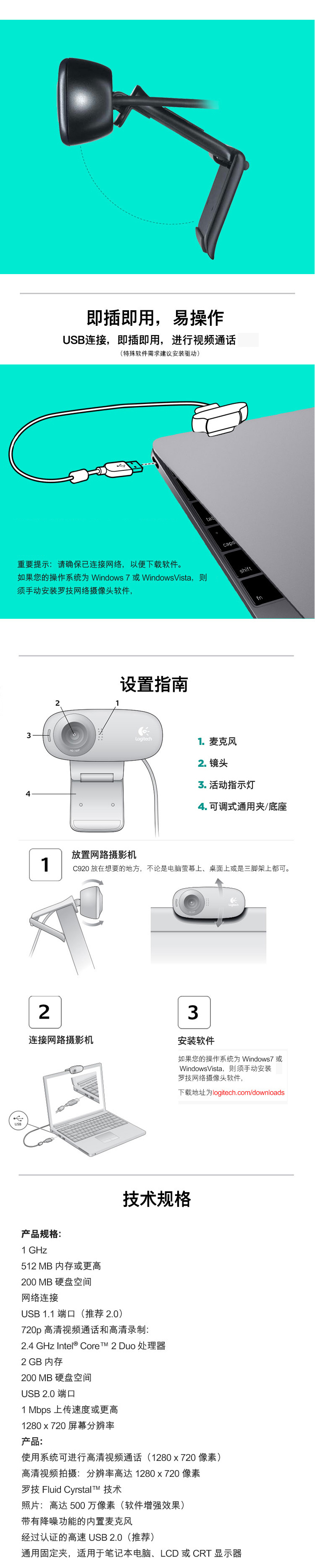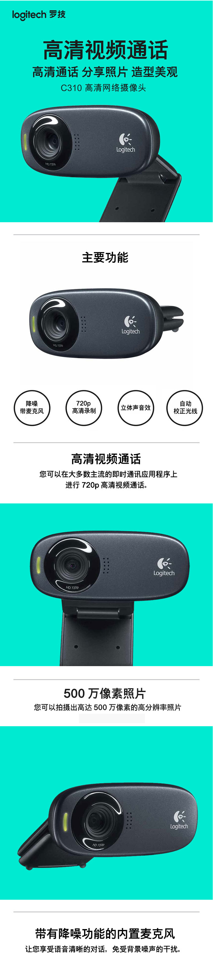 商品名称:罗技(Logitech)C310 高清晰网络摄像头(4个/箱)