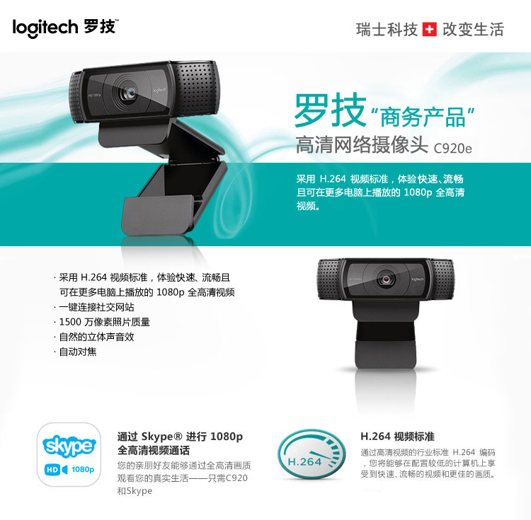 商品名称:罗技(Logitech)C920e 高清网络直播摄像头