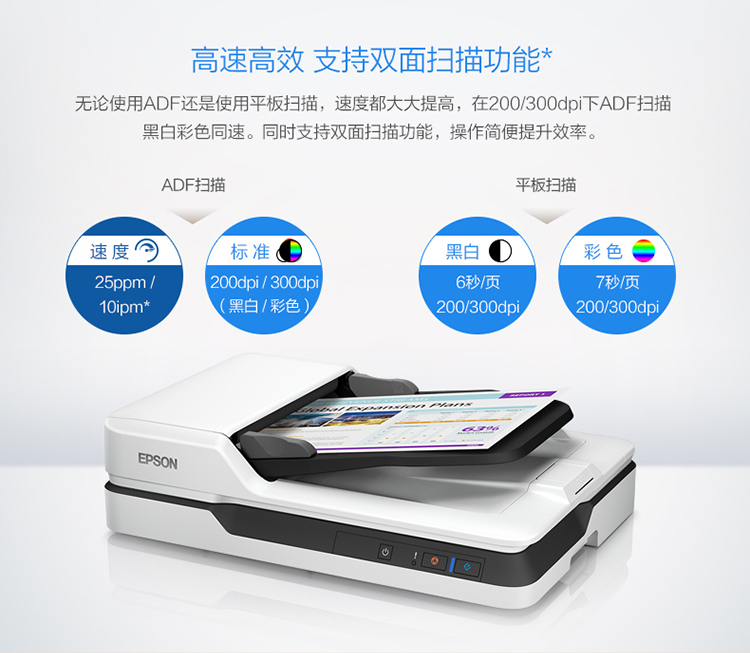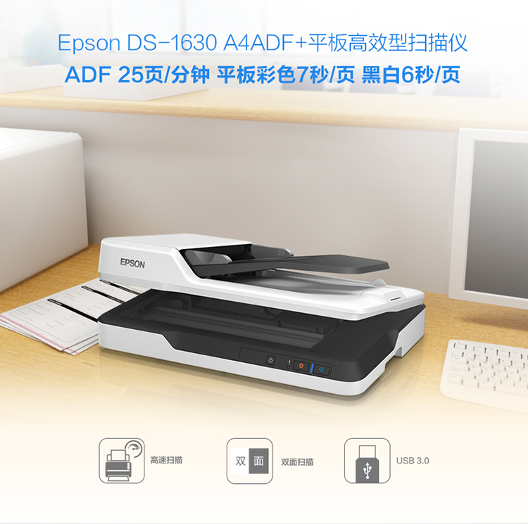 爱普生(EPSON) DS-1630 A4 ADF+平板 25ppm高速彩色文档扫描仪