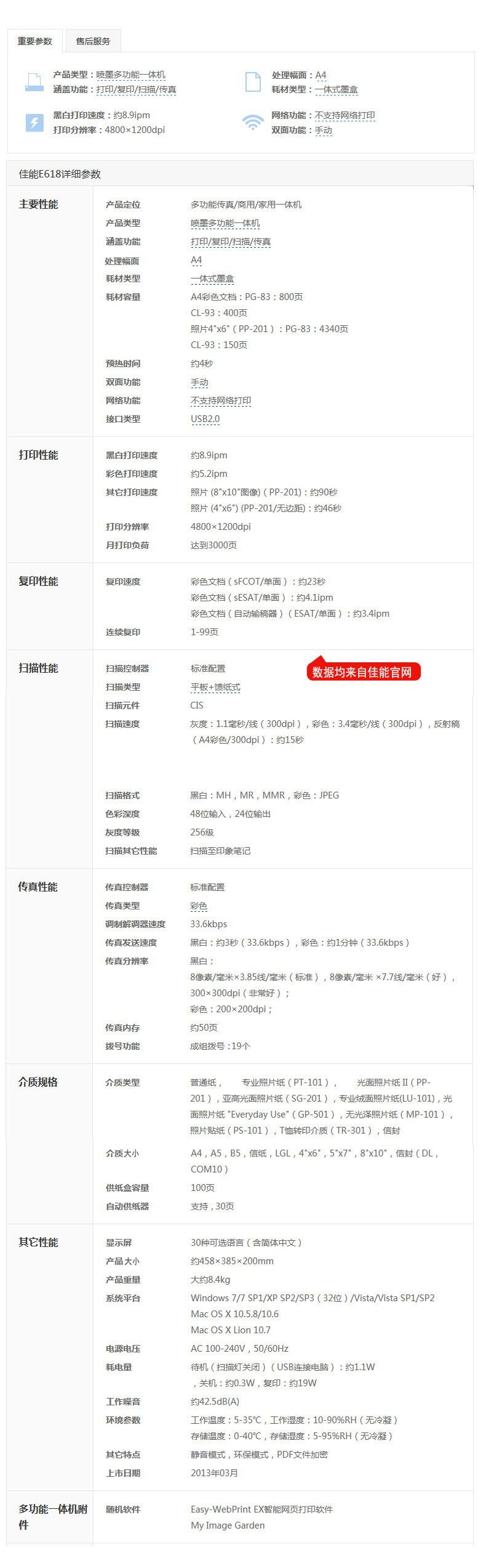 商品名称:佳能(Canon) E618 经济彩色喷墨传真一体机(打印 复印 扫描 传真)
