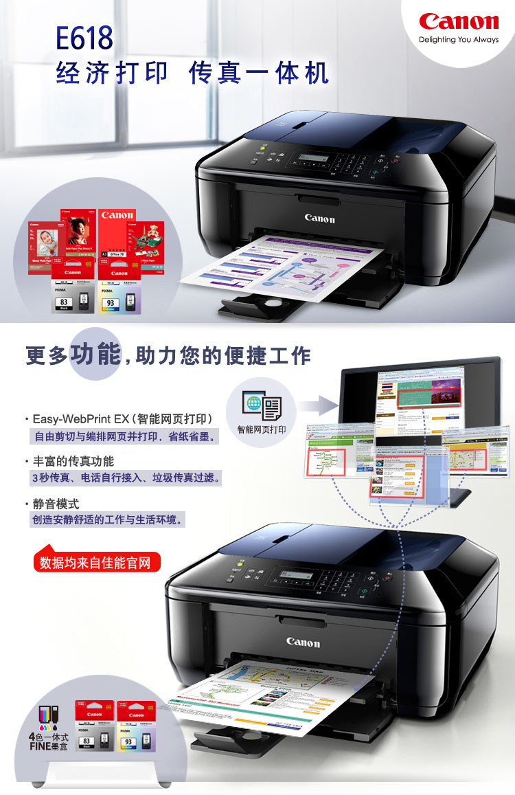佳能(Canon) E618 经济彩色喷墨传真一体机(打印 复印 扫描 传真)
