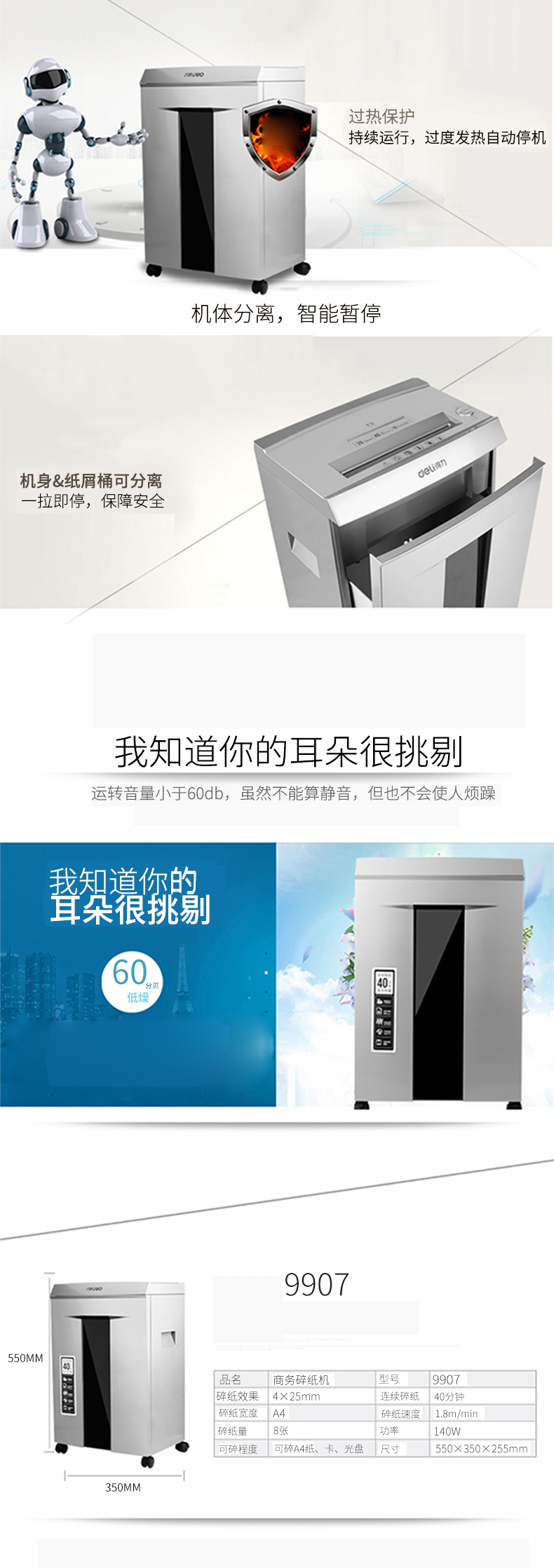 商品名称:得力9907碎纸机(金属灰)