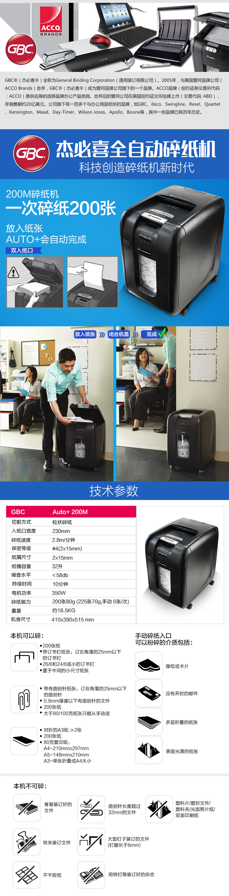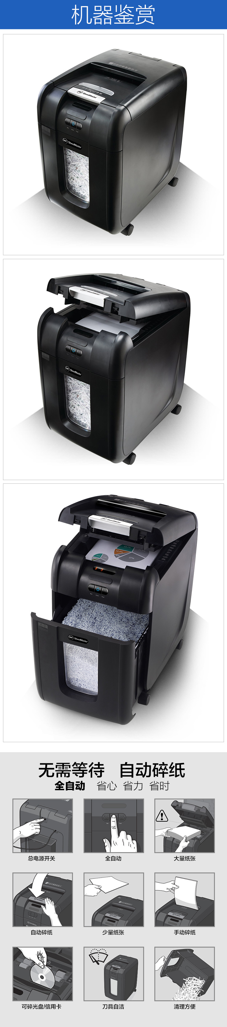商品名称:杰必喜(GBC)Auto+100M 高效办公全自动碎纸机 100张纸/次(不包邮)