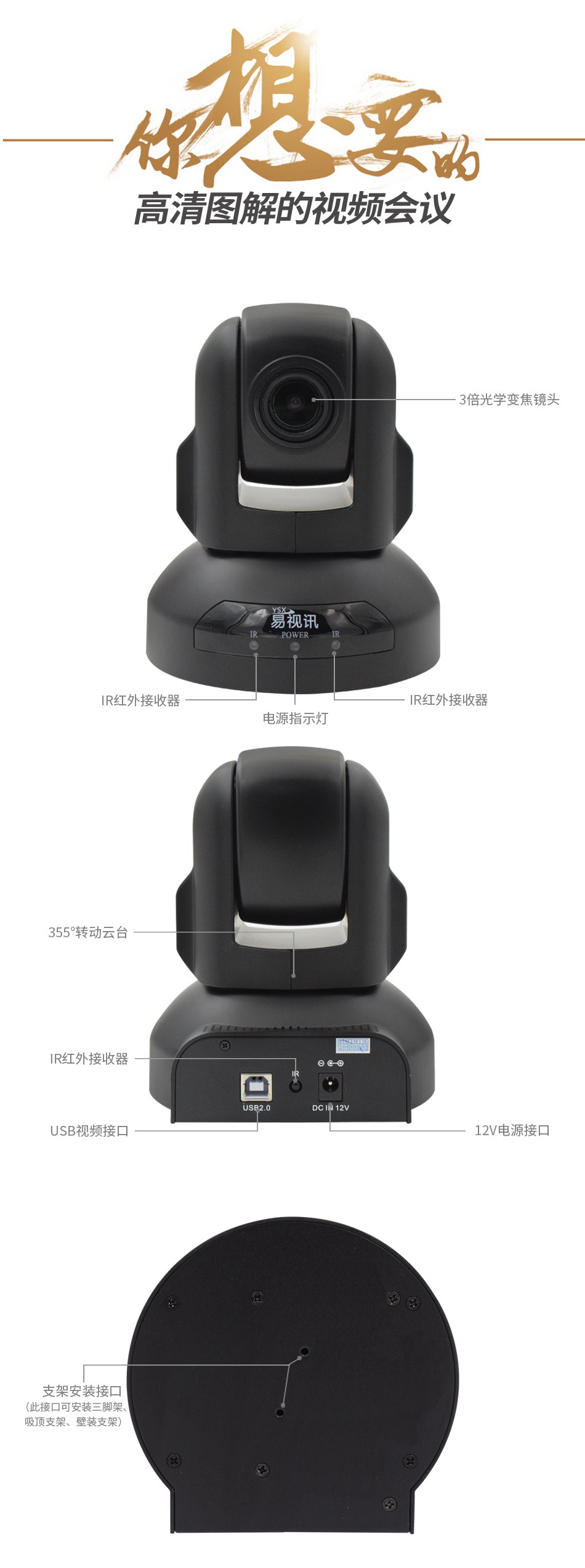 易视讯(YSX) USB视频会议摄像头/高清会议摄像机/系统设备GT-C