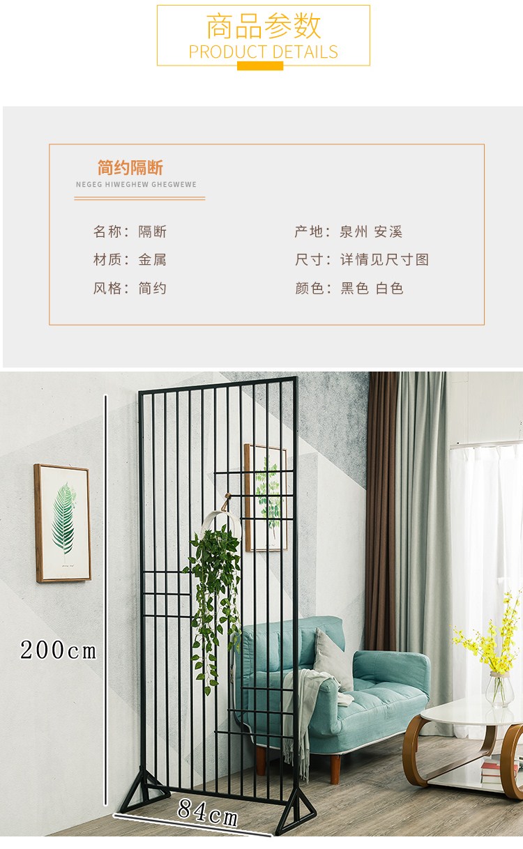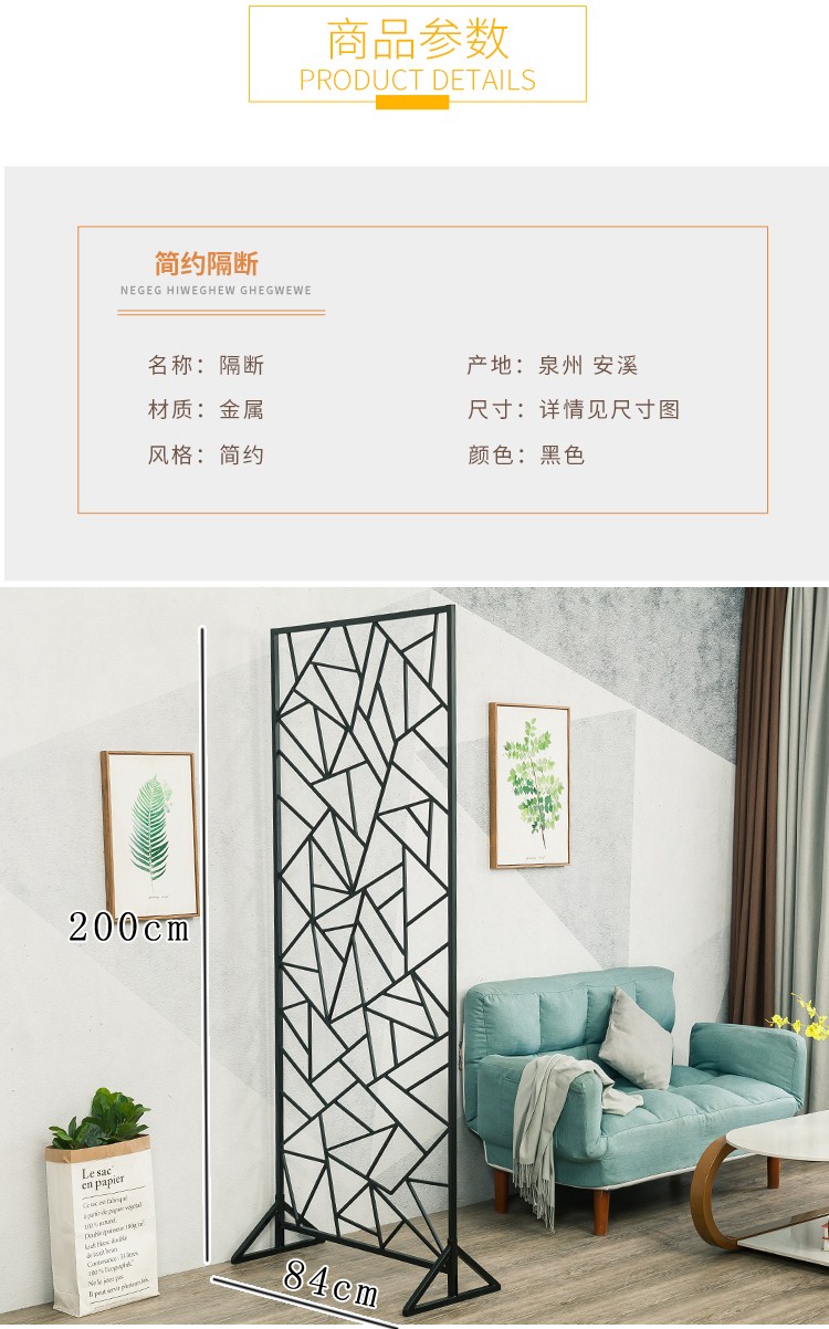 商品名称:北欧铁艺屏风客厅隔断镂空落地简约玄关工业风定制创意墙壁装饰品