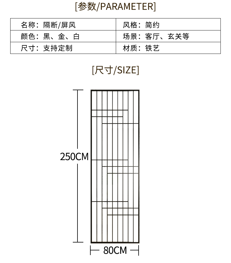 商品名称:北欧入户铁艺隔断屏风客厅办公室隔断设计隔断墙家用房间卧室分隔