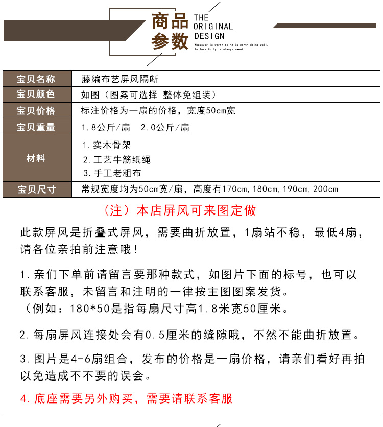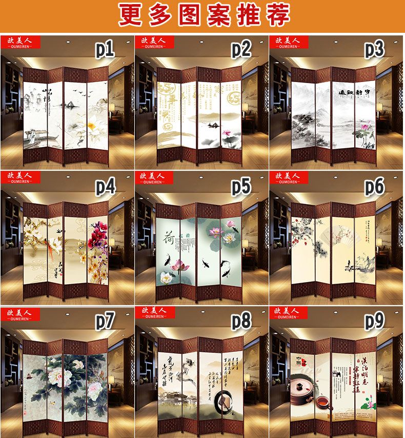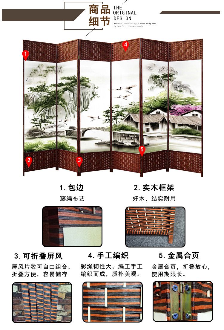 商品名称:欧美人 屏风隔断中式客厅玄关门酒店办公室草编折屏单扇50*180单