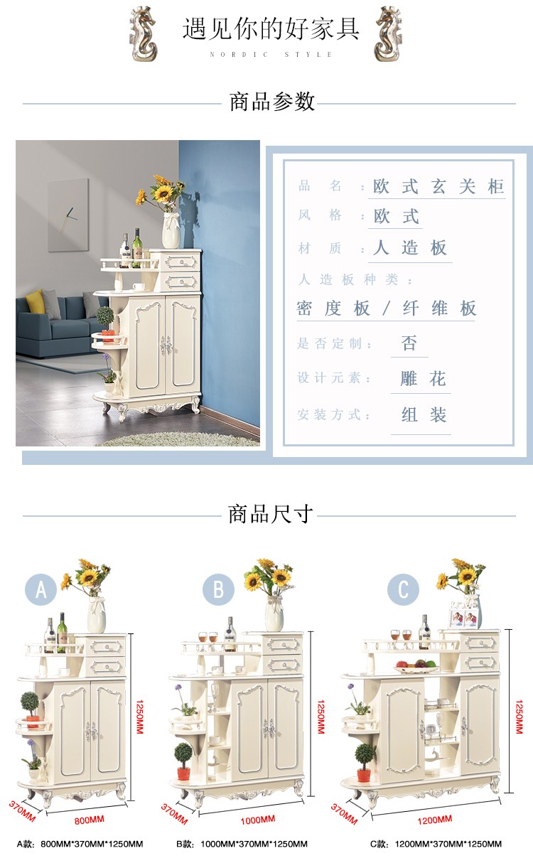 商品名称:真尚美 玄关柜屏风欧式隔断柜酒柜客厅屏风柜 C款120*37*125送货