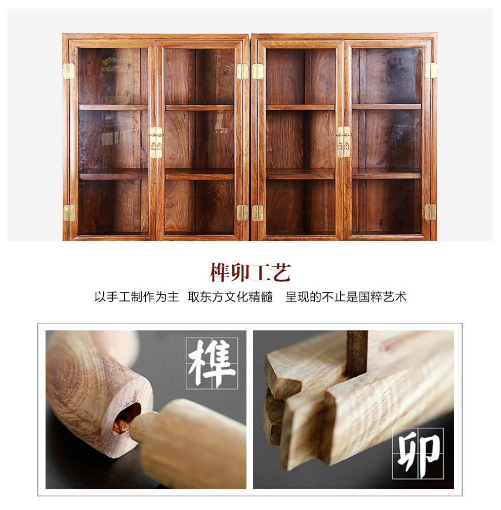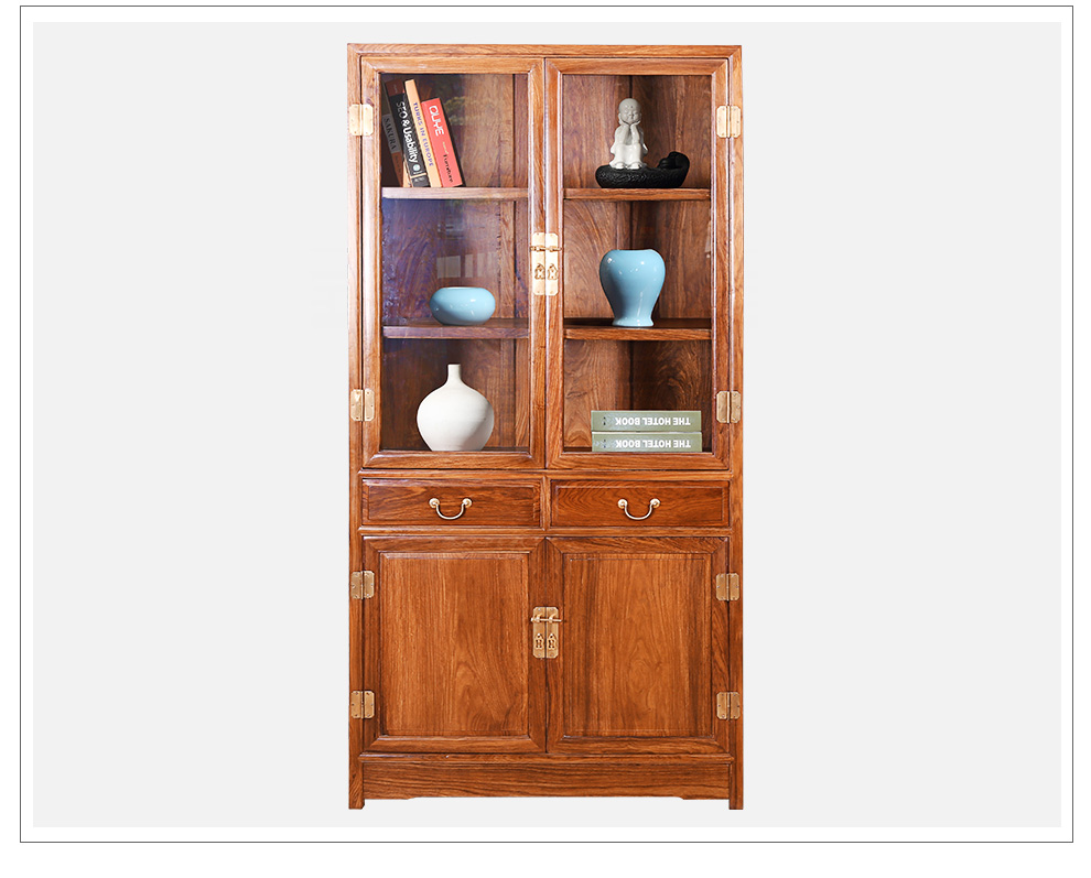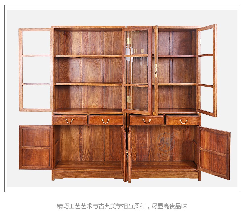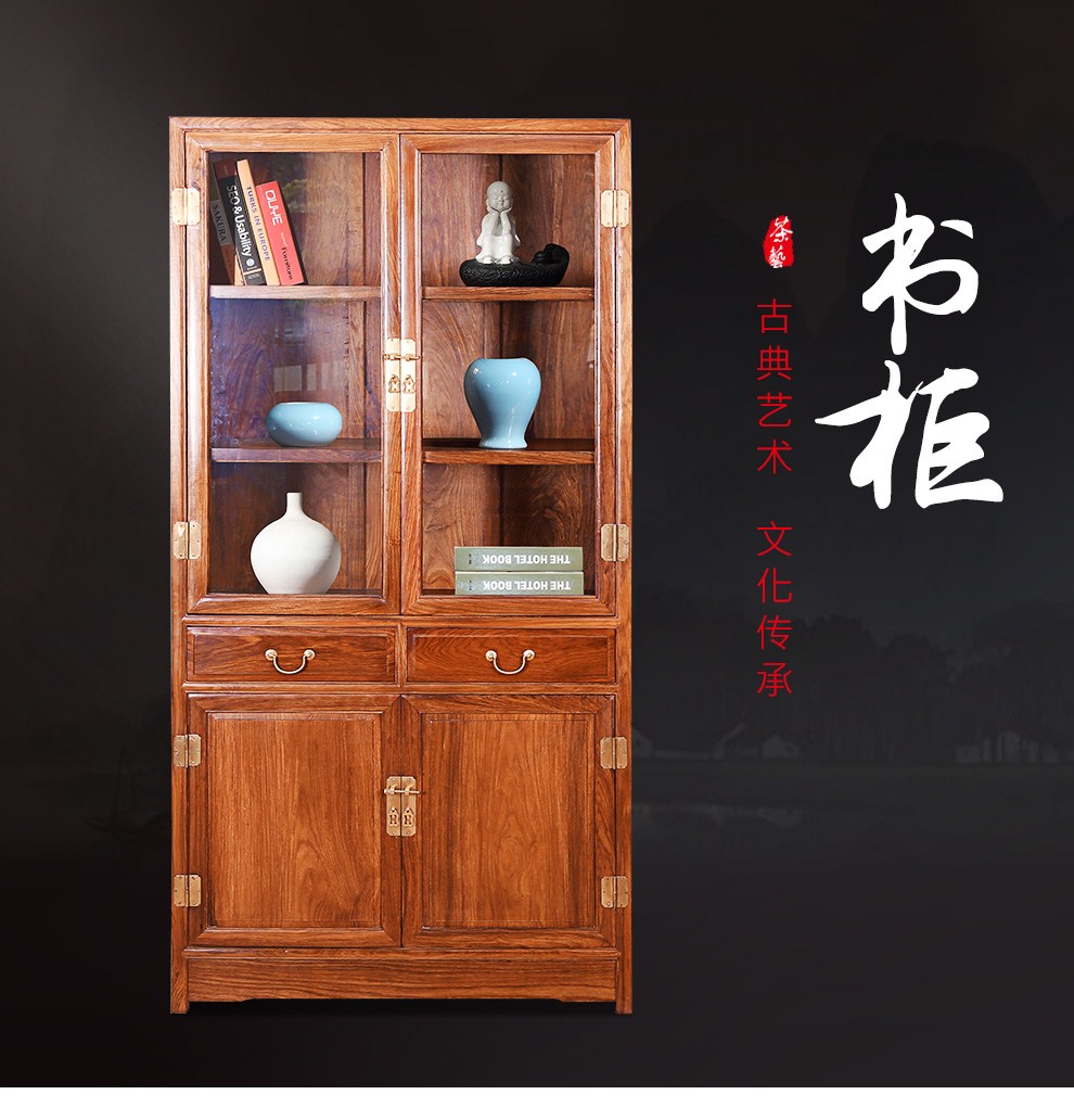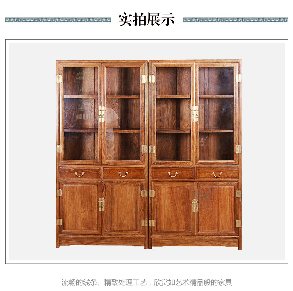粤顺 红木家具非洲花梨(学名:刺猬紫檀)书柜实木书柜玻璃柜博
