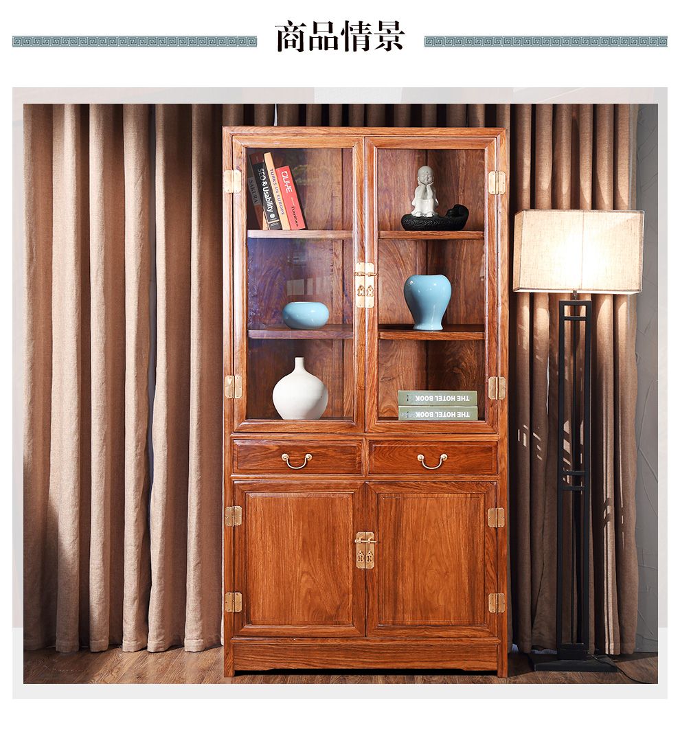 商品名称:粤顺 红木家具非洲花梨(学名:刺猬紫檀)书柜实木书柜玻璃柜博