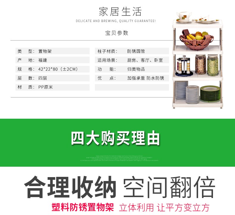 商品名称:索尔诺 置物架 厨房置物架 层架 落地收纳储物家具办公室书架浴