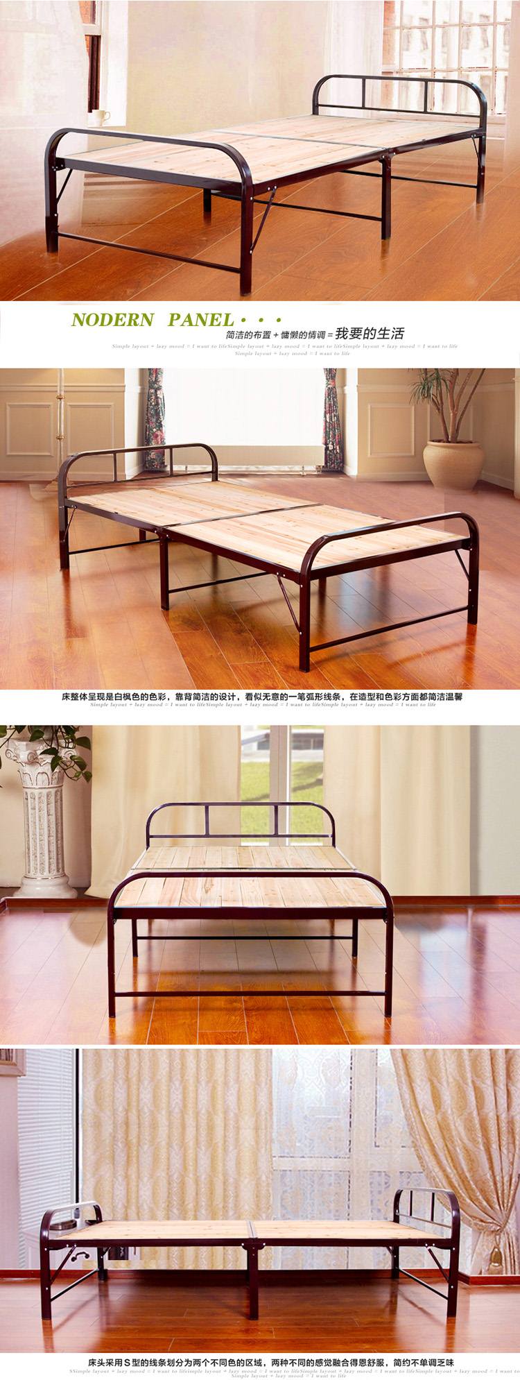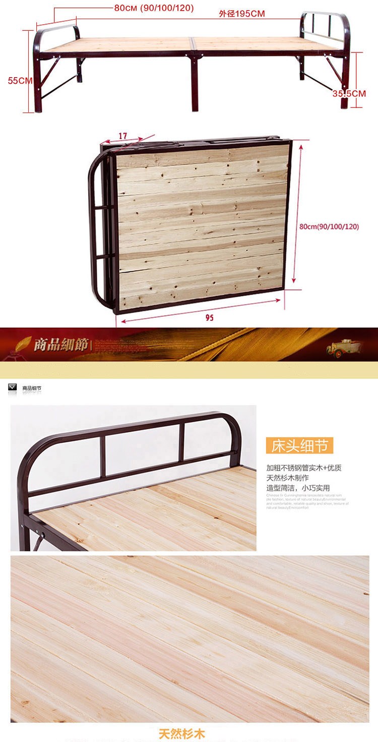 商品名称:巧霞加固双头钢木床折叠床单人床午休床木板床简易小床宽120cm钢