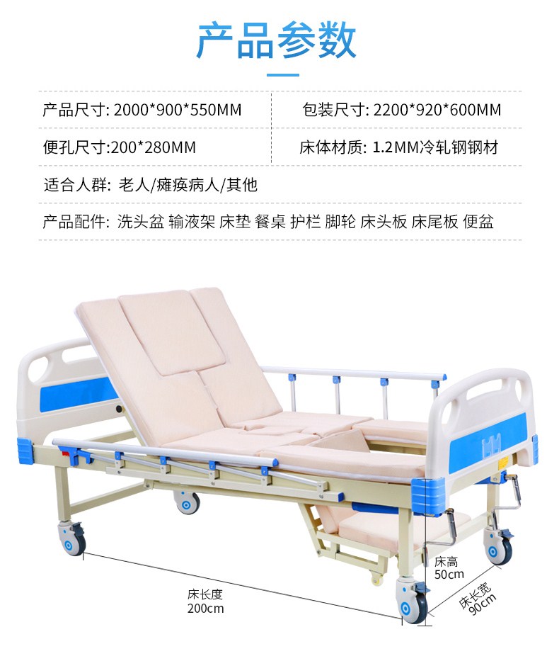 商品名称:钢塑 可孚护理床老人家用多功能病床瘫痪护理医疗床手动翻身床带便孔