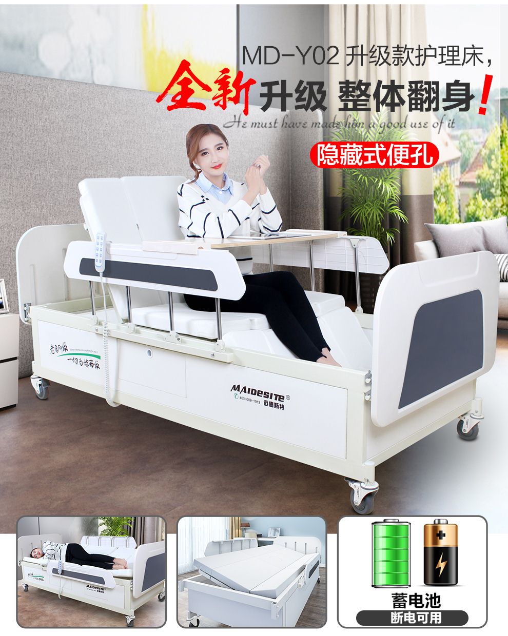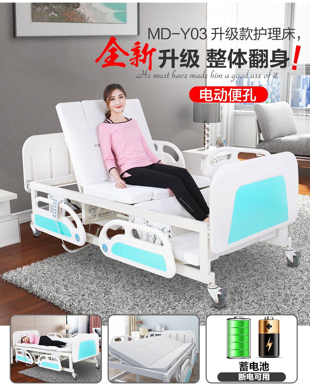 钢塑 迈德斯特护理床家用老人多功能翻身医用医院医疗病床手电两用升