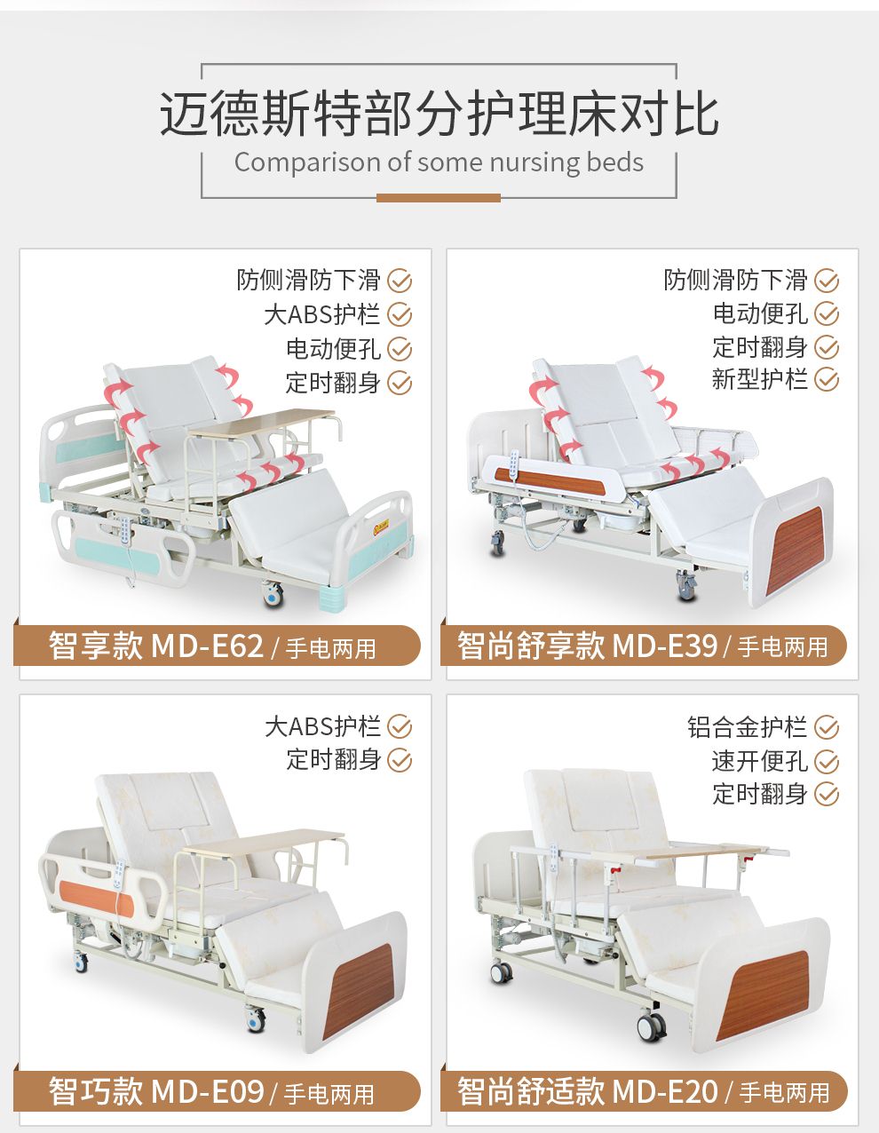 商品名称:钢塑 迈德斯特护理床家用老人多功能翻身医用医院医疗病床手电两用升