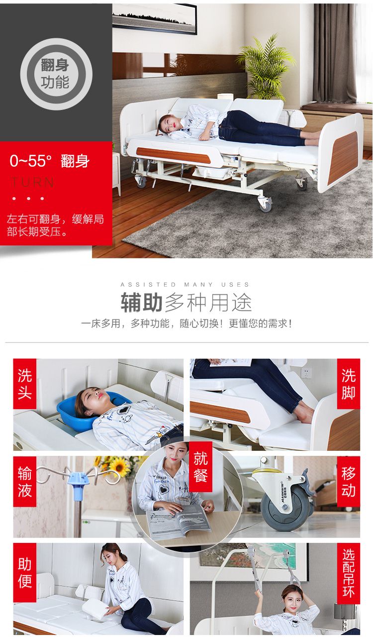 商品名称:钢塑 迈德斯特护理床家用老人多功能翻身医用医疗病床手动全曲MD-E56