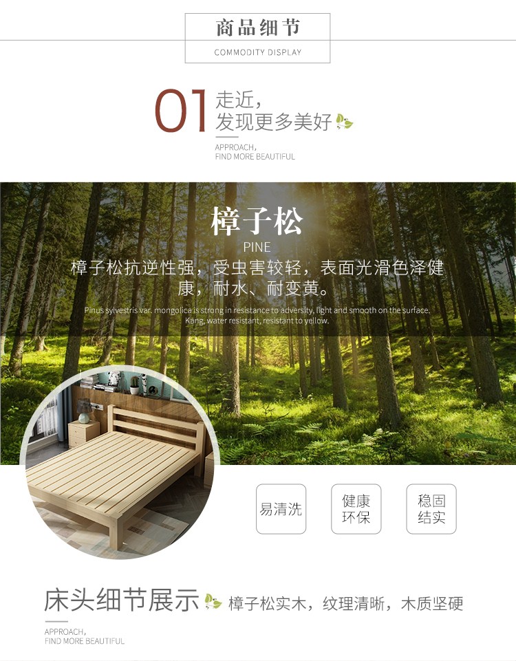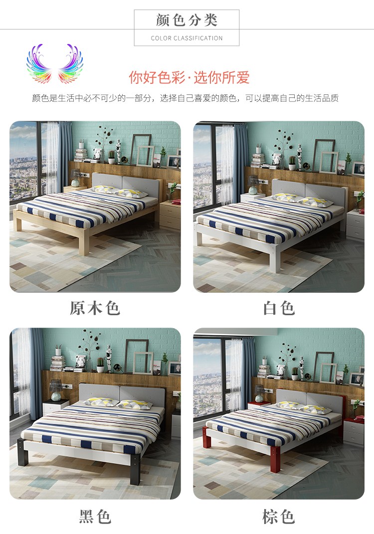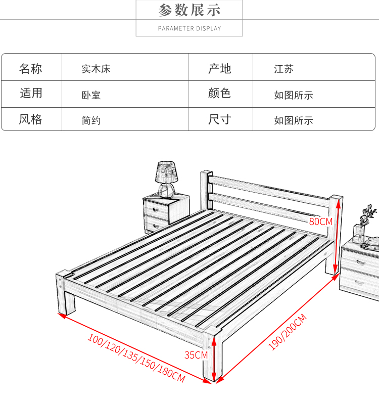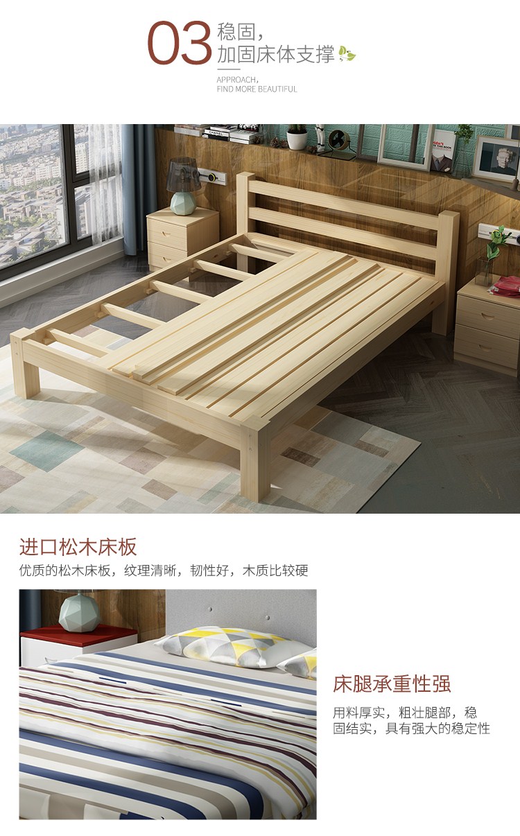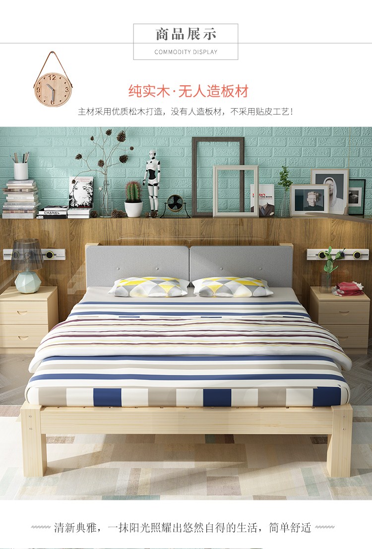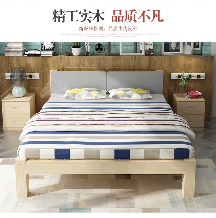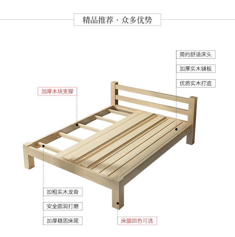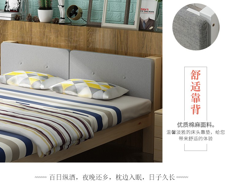 商品名称:帝灏木床实木床1.5单人床1.2米松木成人床双人床1.8米布艺床卧室