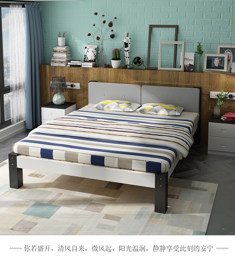 帝灏木床实木床1.5单人床1.2米松木成人床双人床1.8米布艺床卧室